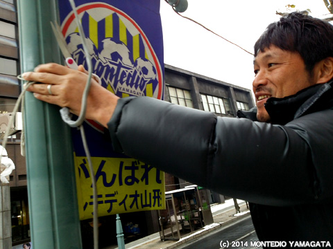 昨日(12/16)、山形市中心商店街に掲出されているモンテディオ山形のフラッグ撤去が行われました。