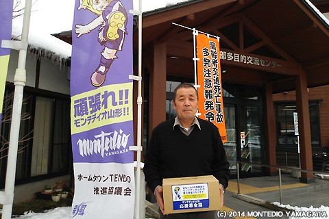 同日、天童南部モンテ応援隊様より19,000円をいただきました。天童南部公民館に設置していただいた募金箱です。