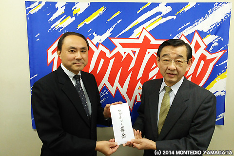 ドコモショップ寒河江店様より6,126円の贈呈をいただきました。スポンサーでもある同店は心強いサポーターです。