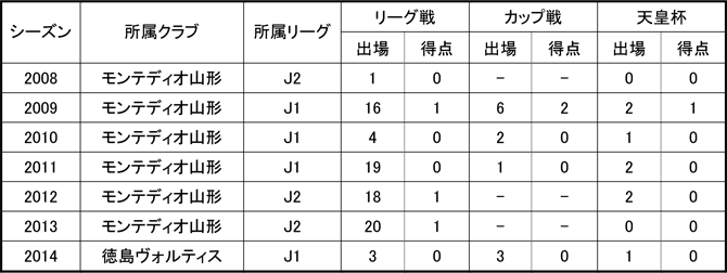 クマガヤサッカ→スポーツクラブ→前橋育英高→モンテディオ山形→徳島ヴォルティス