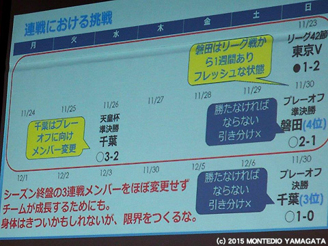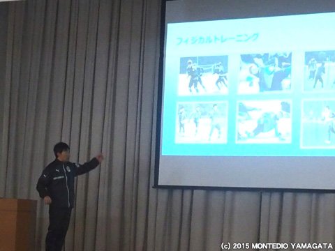 続いて、普段の練習でおこなっているトレーニングや、試合に向けてどのようなスケジュールでコンディション作りを進めていくのかなど説明があります。