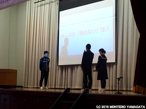 1月13日(火)酒田市立鳥海八幡中学校(駒谷太郎校長)でおこなわれた「夢・志Day」へゲストとして、モンテディオ山形の石井孝典フィジカルコーチが「夢」について講演会をおこなった様子についてレポートいたします。