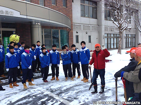 私たちモンテディオ山形は「地域にとって必要な存在になる」ことを目標に掲げ、ホームタウン活動を展開しております。いつも地域住民のみなさまに支えられているユースの選手達が、地域に力を還元し支えていくこと。支えられてばかりではなく、地域と支え合い生きていくことがとても大切なことです。今回は雪かきという活動でしたが、今後も私たちが地域のために今何ができるかということを加味しながら活動に取り組んでいきます。