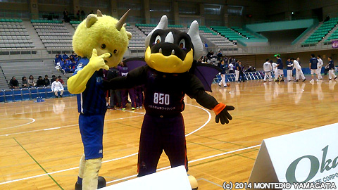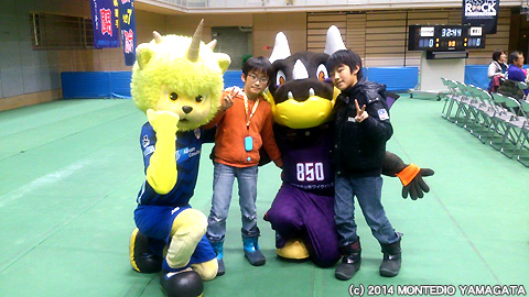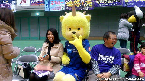 この日は山形市総合スポーツセンターでパスラボ山形ワンヴァンズVS. アースフレンズ東京Zの試合がおこなわれており、ディーオも応援に駆け付けました。