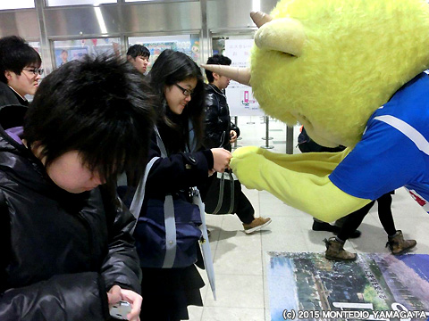 パスラボ山形マスコット・ヴァンゴーくんと一緒に登場します。