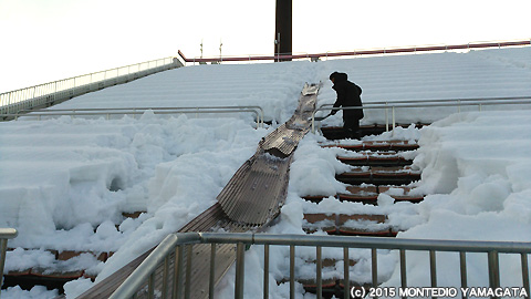 明日は10:00から活動を開始いたします。除雪にご協力いただける方は、直接競技場にお越しください。参加者へは「山形総力戦」ステッカーなどプレゼントいたします!