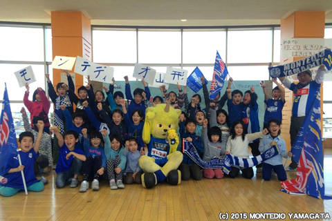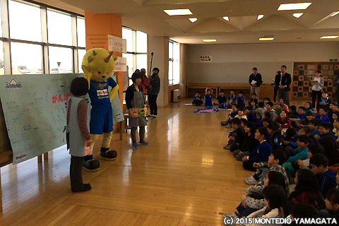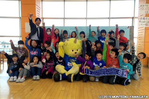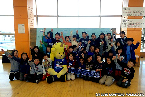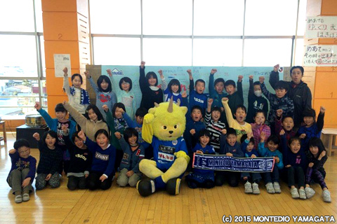 食について学んだあとは、今シーズンのチームの勝利を願い力強いエールをいただきました。天童市立天童中部小学校のみなさん、ありがとうございました。