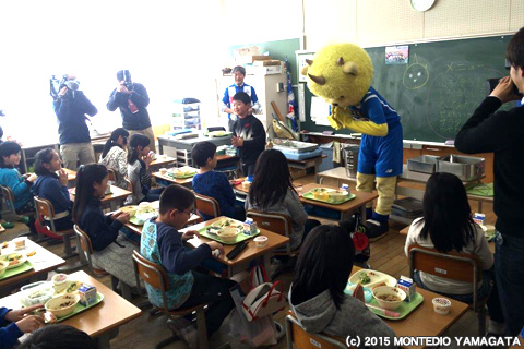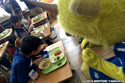 また、今回のモンテディオ山形応援給食は県内各地で実施され、天童市の他にも、東根市、新庄市、米沢市、南陽市、尾花沢市、大石田町、朝日町、大江町、山辺町、温海町、庄内町、鶴岡養護学校で実施していただき、チームを応援していただきました。本当にありがとうございました。今年も県内各地の小学校で食育活動を展開していきますので、ぜひ楽しみにしていてくださいね。