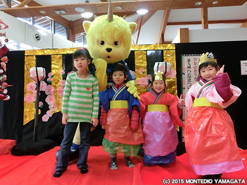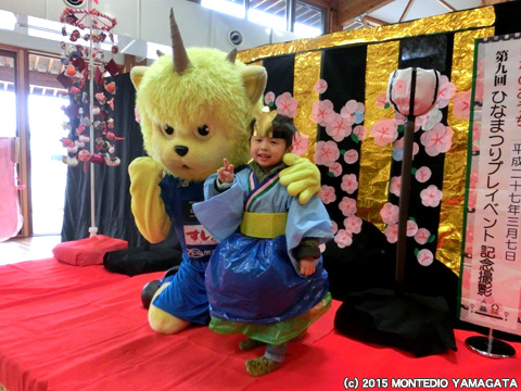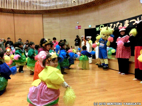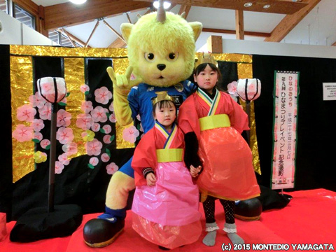 3月7日(土)は河北町でおこなわれた第9回谷地ひなまつりプレイベントへディーオが参加いたしました。会場へ到着し、さっそくかわいい衣装を着た子供たちと記念写真を撮影します。