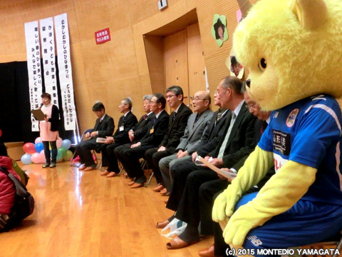 活動開始前のセレモニーへ、弊社社長 髙橋 節、監督 石崎 信弘が参加し、山形商工会議所青年部のみなさまにご挨拶させていただきました。