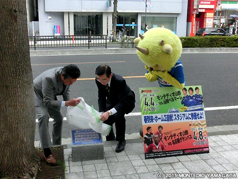 ディーオがメモリアルプレート設置式、エスパル山形店での試合告知活動をおこないました