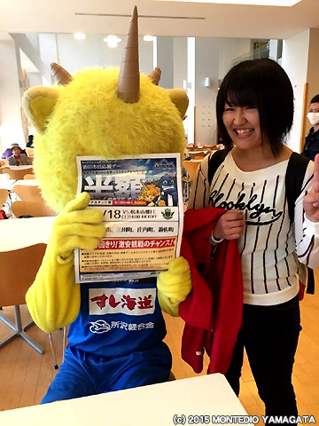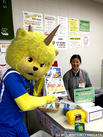続いてディーオが向かった先は、遊佐町です。チケットの販売窓口となっている遊佐町生涯学習センターへあいさつに向かうと、遊佐町のみなさんにこちらも温かく迎え入れていただきました。ありがとうございます。