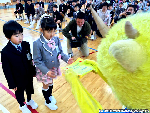 ディーオが朝日町立宮宿小学校入学式でランドセルカバー贈呈をおこないました