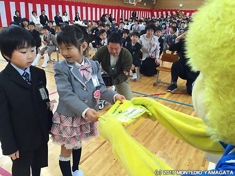 ランドセルカバーは朝日町交通安全母の会様による朝日町内の新小学一年生へ新入学祝いの贈呈企画に弊社が協力させていただき、朝日町内の新入学一年生へモンテディオ山形のオリジナルランドセルカバーを贈呈させていただいております。