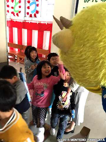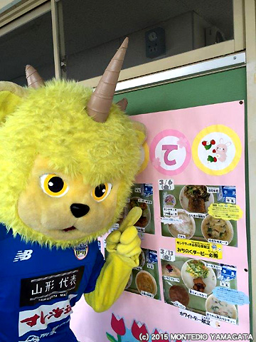 学校にはモンテディオ山形応援給食を実施した際の写真もあり、ディーオも嬉しそうにしていましたよ。