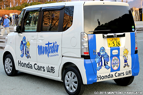ウォーミングアップの前、ピッチサイドではホンダカーズ山形様に広告協賛いただいたロゴカーの贈呈式が行われました。