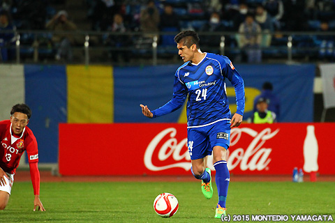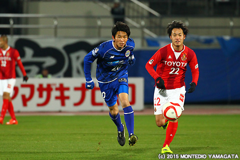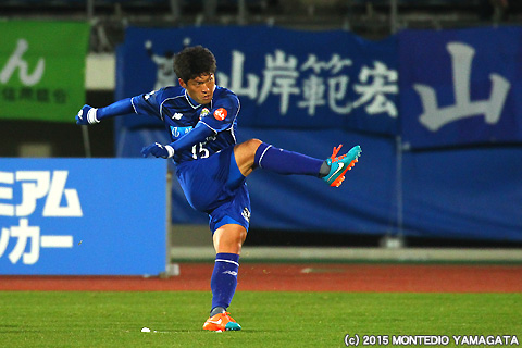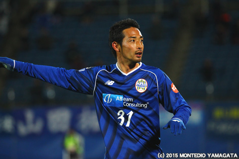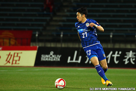 モンテディオ山形のメンバーとして初の試合出場となった高木純平選手。チームに合流してまだ間もないですが、そこはベテランらしさを存分に発揮し、攻守ともしっかりと組織の中に入ってプレーをします。