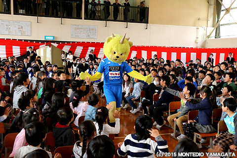 昨日、4月8日(水)は19:00よりホームで名古屋グランパスとの試合がありましたが、試合の前に天童市立天童北部小学校の入学式へ参加。