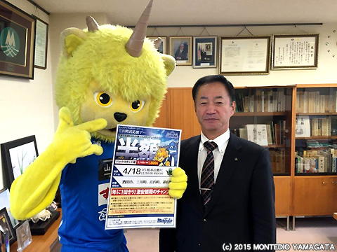 4月14日(火)市町村応援デーをPRする為に、ディーオが三川町へ行ってきました。三川町長の阿部 誠様と一緒に三川町の応援デーをPR!
