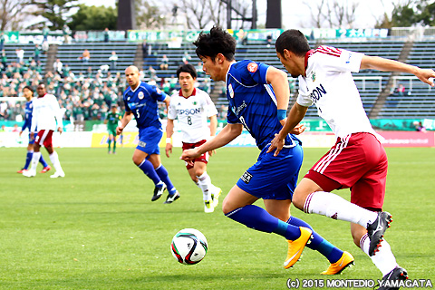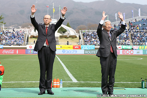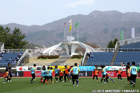 NDソフトスタジアム山形のある山形県総合運動公園内の桜も満開となり、サッカー観戦には非常に快適なコンディションのもと行われたこの試合の対戦相手は、今季同じくJ1に昇格した松本山雅FCです。