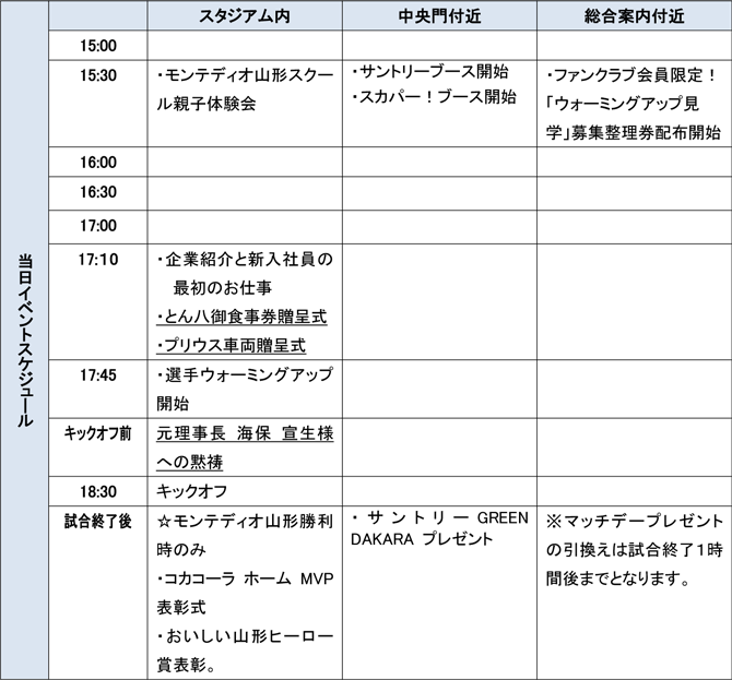 2015明治安田生命J1リーグ1stステージ第7節 モンテディオ山形vs.FC東京の開催概要を、次の通りお知らせいたします。下線部が追加・変更部分となります。