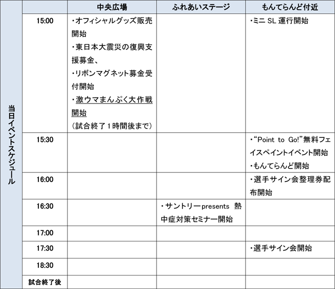 | J1-15 | 6月7日(日) | 16:00 | 鹿島アントラーズ | 15:00~19:00 | 6月4日(木) | 和会議室 |