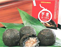 創作中華料理 鍋亭 龍山(ロンサン) 佐藤 直喜料理長が考案した、山形市の伝統野菜悪戸芋を使った生地で芋煮を包んだ新商品「芋煮ばくだん」を公園レストランテラスで限定200個を販売します。直径10センチ。里芋の一種、悪戸芋でも繊維が多い親芋を練りつぶして竹墨を混ぜた生地で、山形牛やネギ、シメジなど入ったとろとろの芋煮を包み、表面に県産米粉が付け、カラッと揚げています。