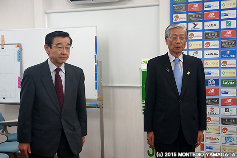 「我々、モンテディオ山形は地元からの支援のもとで、様々な活動を展開しています。今年J1の新しい舞台に復帰はしましたが、今は結果が残せていない状況です。これから、もうひとつ形を作るために、このような有り難い支援が絶対のものだと思っています。この力でクラブが目標に掲げているJ1残留を成し遂げ、みなさんにご報告できるようなシーズンにしたいと思っています。」