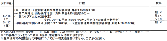 貸切バス代、有料道路代、観戦ツアーのみチケット代(ビジター自由席)