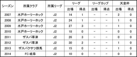 帝京高→順天堂大→水戸ホーリーホック→ザスパ草津/ザスパクサツ群馬→FC 岐阜