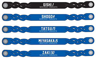 ユニフォームカラーの革ブレスレット、選手名と背番号入りの選手愛を表現する新グッズです。