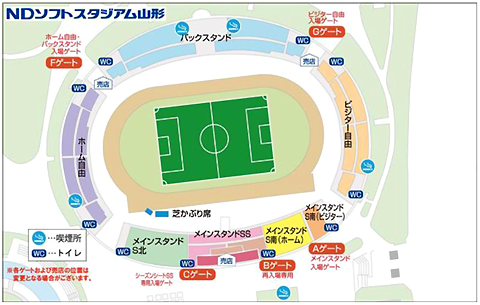 - メインスタンドS南席(ホーム)・(ビジター)それぞれの席数が増減する場合があります