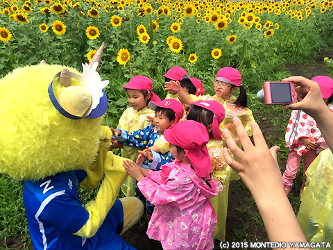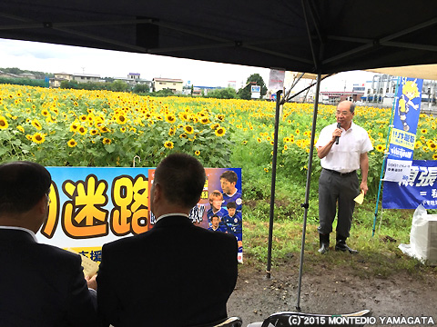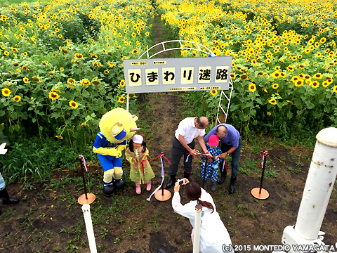 昨日は、天童市干布地区のひまわり迷路の開園式がありました!あいにくの雨模様でしたが、山本信治天童市長を始め、小百合第二保育園の園児など、たくさんの方が集まってくれました。