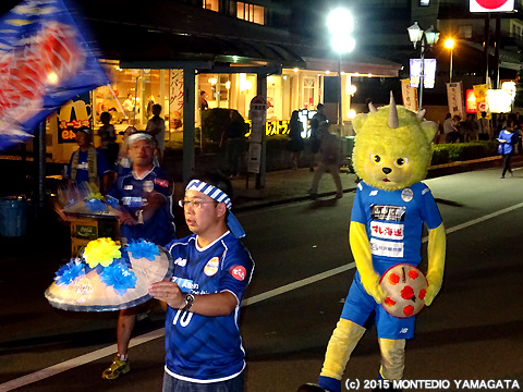 8月8日(土)に中村隼選手と瀬川和樹選手がサポーターの方々と一緒に天童夏まつりに参加しましたので、その様子をお伝えします。もちろん、みんなのアイドル ディーオも参加しましたよ!