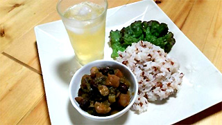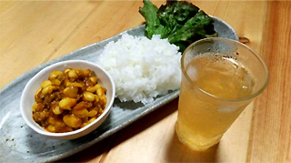 カリオカ豆をひき肉ととうもろこしと一緒にキーマカレー風に仕上げました。隠し味にフルーツ果汁やココナッツミルクを使ったトロピカルでさわやかな味わい。山形のブランド米つや姫と合わせてどうぞ。