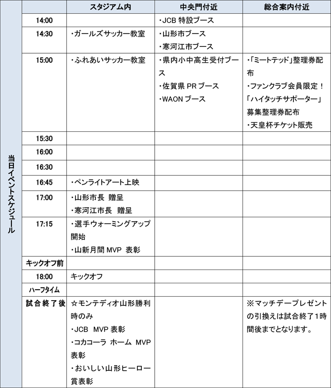 2015明治安田生命J1リーグ2ndステージ第7節 モンテディオ山形vs.サガン鳥栖の開催概要を、次の通りお知らせいたします。下線部が追加・変更部分となります。