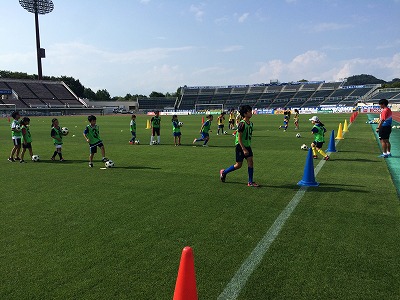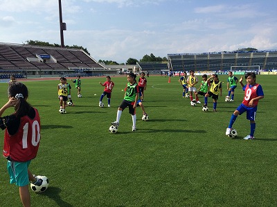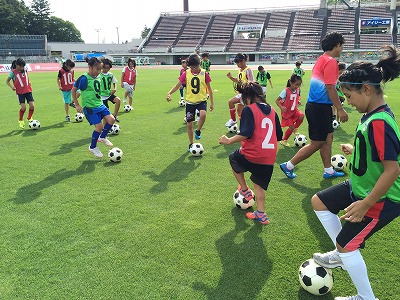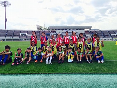 8/16(日)モンテディオ山形の試合の前にピッチを使って女の子だけのガールズサッカー教室が行われました。