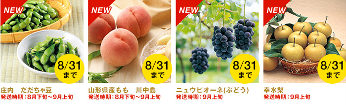 山形は今週から急に涼しくなり、大変過ごしやすくなりました。しかし、味覚の夏はまだまだここからが本番です。んまいものプロジェクトでは昨年の“んまいもの”プロジェクトで注文数No1の山形県産の桃、”川中島”をはじめ、だだちゃ豆、ニュウピオーネ(ぶどう)、幸水梨などこの時期を代表する山形の味覚を取り揃えています。