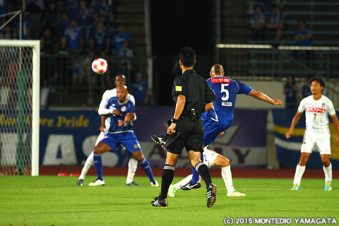 引いた守備からカウンターを狙うカマタマーレ讃岐に対し、先制点となる1失点を喫してしまうものの、その後は切り替えの速さで対応。最終ラインの石川竜也選手も高い位置まで攻め上がりますが、相手ボールをなった瞬間に一気に帰陣します。