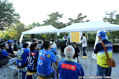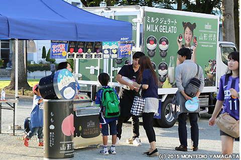 2015明治安田生命J1リーグ2ndステージ第10節サンフレッチェ広島戦は、ユニフォーム(パンツ)スポンサーとしてもお馴染みの山形食品様による「サン&リブ スペシャルマッチ」として開催されました。特設の山形食品ブースでは人気の「山形ジェラート」の販売が行われただけでなく、選手サイン色紙がプレゼントされるとあってたくさんの人が集まります。