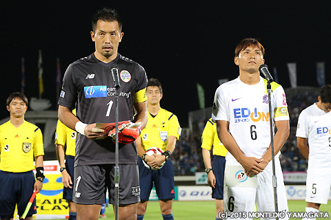 この試合はJFAリスペクト・フェアプレーデイズ2015として行われます。試合前、両チームのキャプテンがフェアプレーの宣言をします。