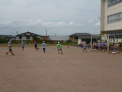 当日は、雨が心配されましたが、みんなの日頃の行いが良かったせいかグラウンドで活動ができました。