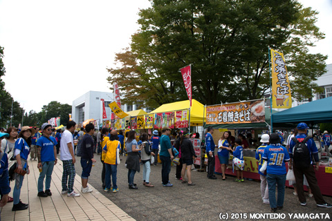 イベントでも「山形・宮城物産グルメ市」などダービーらしさが満載です。山形・宮城両県とも山海の美味いものが揃うだけに、試合に向けてのパワー充電には最適。