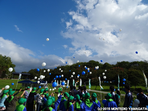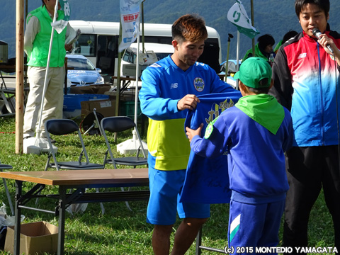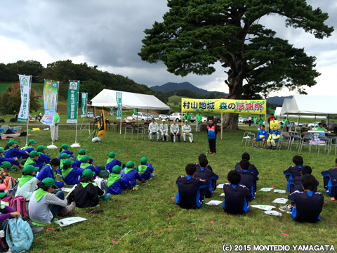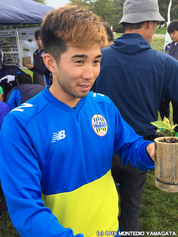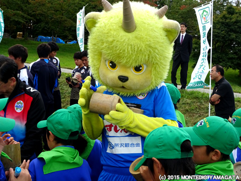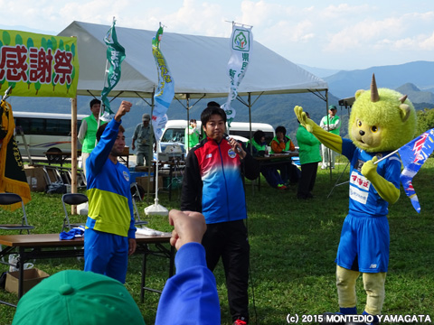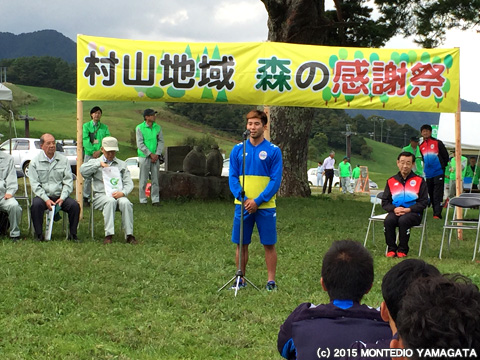 2015年9月27(日)、山形県天童市の天童高原で村山地域森の感謝祭式典と新事業となるモンテディオ山形 未来の森のキックオフセレモニーにモンテディオ山形 高橋 節社長とトップチームの伊東俊選手、ディーオ、そしてモンテディオ山形ユースチームの選手たちが参加しましたので、その様子をお伝えします。