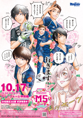 モンテディオ山形では新規女性ファンの獲得に向けて、活動を続けているモンテディオ山形若手選手グループ「M-5」の女性限定特別シート「M-5シート」が、10月17日(土)19時から開催されるヴァンフォーレ甲府戦にて展開されます。