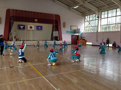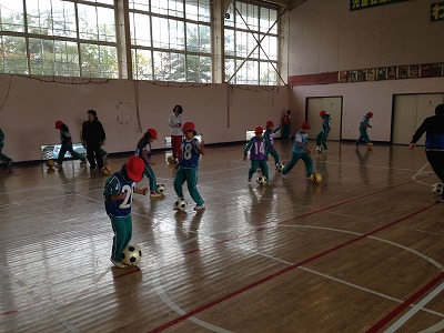 雨の為体育館での活動でした。でもサッカーは室内でも楽しめます!!