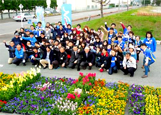 モンテディオ山形のホームゲーム会場である「NDソフトスタジアム山形」へのアクセス道路に綺麗な花を植えて、大地からも「モンテディオ山形」を応援しようと「きらりロードの会」(ボランティア団体)様の植栽活動が今年も実施されています。