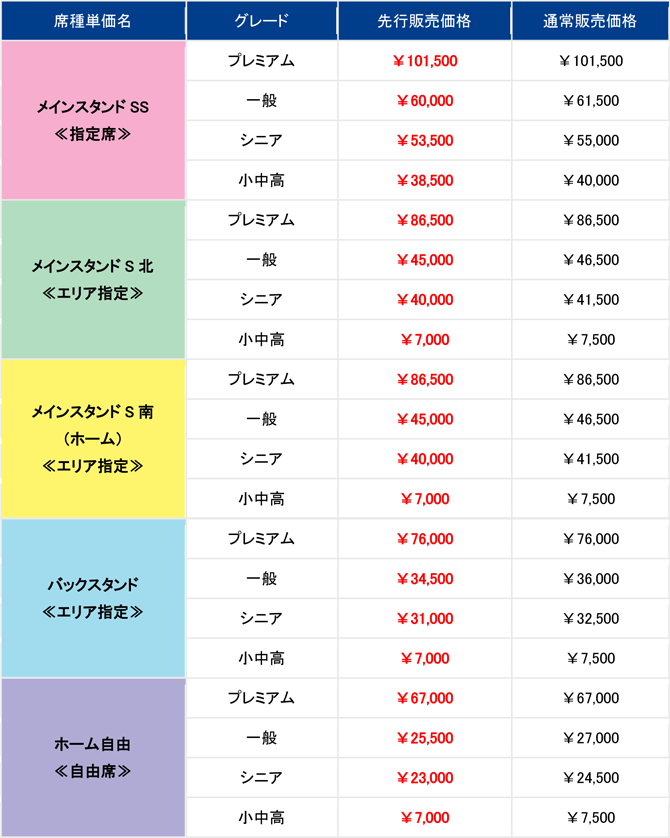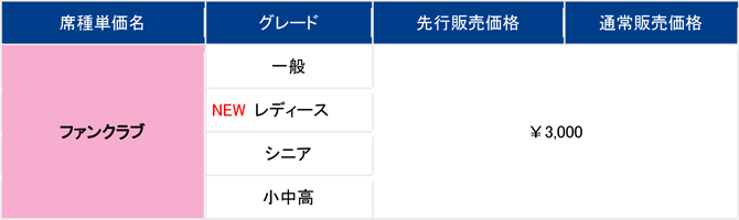 ※シーズンシート会員・ファンクラブ会員お申し込みの席種の変更・キャンセルなどは、いかなる理由があってもできません。