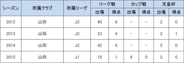 「このたび、松本山雅FCに移籍することになりました。モンテディオ山形でプロとしてキャリアをスタートできたこと、いつも温かい声援を送ってくれたサポーターの皆さん、本当に感謝しています。これからも成長できるように頑張ります。4年間ありがとうございました。」