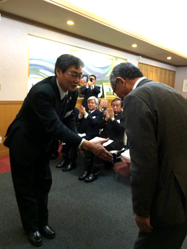 公開日 2016.01.26 激励金、リボンマグネット募金の贈呈(河北ふたば会様) 1月22日、弊社の森谷社長が山形銀行谷地支店の取引企業で組織する河北ふたば会様の総会に講師として招かれ、会長の宇佐美信吉様より、激励金300,000円を贈呈いただきました。あわせて、河北ふたば会の皆様からリボンマグネット募金40,000円をいただきました。 河北ふたば会様、まことにありがとうございます。今後とも、ご支援ご協力よろしくお願いします。 #ホーム ニュース一覧